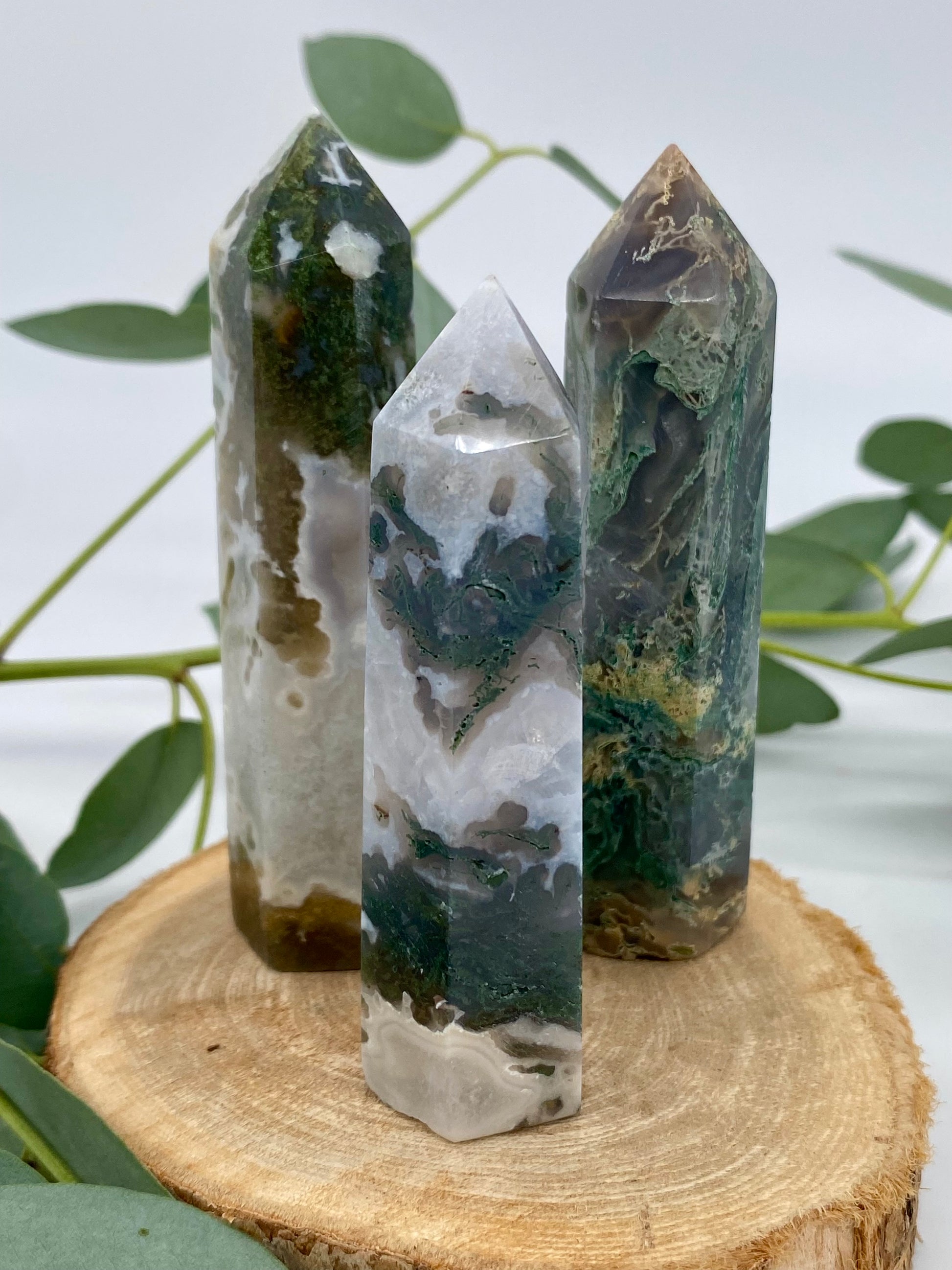 Turm aus echtem Moosachat