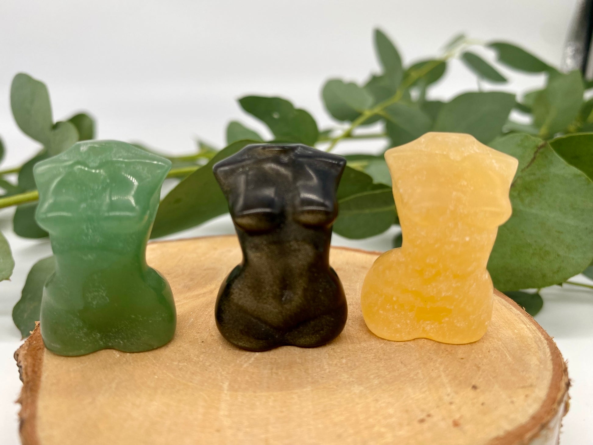 Grüner Aventurin, Golden Obsidian, Orangen Calcit, Rosenquarz, Lepidolith
